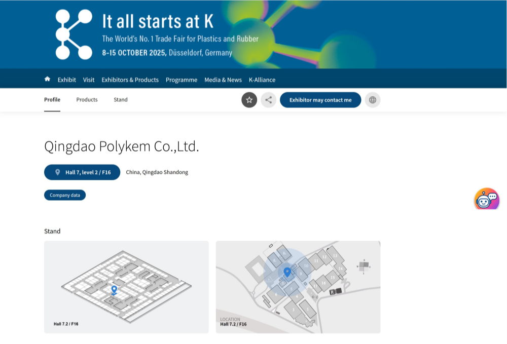Rezin və kimyəvi ixraca yönəlmiş Polykem, bu ilki K Sərgisində iştirak edəcək və qlobal müştərilərə yüksək keyfiyyətli məhsul həlli olacaq. Həm yeni, həm də yaşlı müştəriləri həm də polikem kabinəsinə baş çəkməyə dəvət edirik[Hall 7, Səviyyə2 / F16]və əməkdaşlıq üçün yeni imkanlar araşdırın.